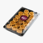 قطع حلوى دائرية صغيرة، مصنوعة من عجينة الكنافة والسمن، مخبوزة بالفرن ومحشوة بكريمة بسكويت اللوتس اللذيذة لطعم أغنى.